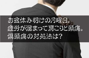 お盆休み明けの月曜日。 疲労が溜まって肩こりと頭痛。 偏頭痛の対処法は?